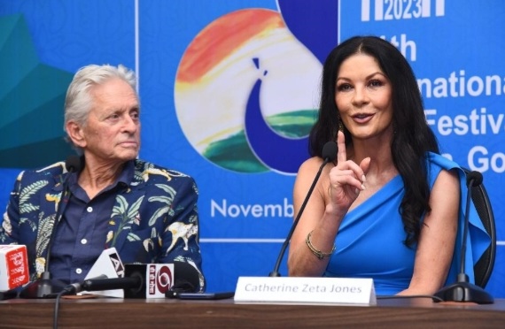 मायकेल डग्लस यांची पत्नी आणि बहु-पुरस्कार विजेती अभिनेत्री कॅथरीन झेटा जोन्स यांनीही माध्यमांशी संवाद साधला. त्या म्हणाल्या की, भारत त्यांना आणि त्यांच्या कुटुंबाला खूप प्रिय आहे. भारताशी असलेला आपला संबंध स्पष्ट करत, त्यांनी एका भारतीय डॉक्टरचा उल्लेख केला, ज्याने त्या अठरा महिन्यांच्या असताना त्यांचे प्राण वाचवले होते. या बाफ्टा पुरस्कार विजेत्या अभिनेत्रीने भारतीय चित्रपटांबद्दलचे त्यांचे प्रेम देखील प्रकट केले आणि बॉलीवूड चित्रपटांचा भाग होण्याची इच्छा व्यक्त केली. भारतीय चित्रपटांबद्दल बोलताना त्या म्हणाल्या, “द लंचबॉक्स हा माझ्या आवडत्या भारतीय चित्रपटांपैकी एक आहे. मी तो लागोपाठ दोनदा पहिला. या चित्रपटाने मला खरोखरच स्पर्श केला.” त्यांनी बॉलीवूड चित्रपट ओम शांती ओम चाही उल्लेख केला, जो त्यांनी आपले कुटुंबीय आणि मित्र मंडळींबरोबर अनेकदा पहिला आहे.