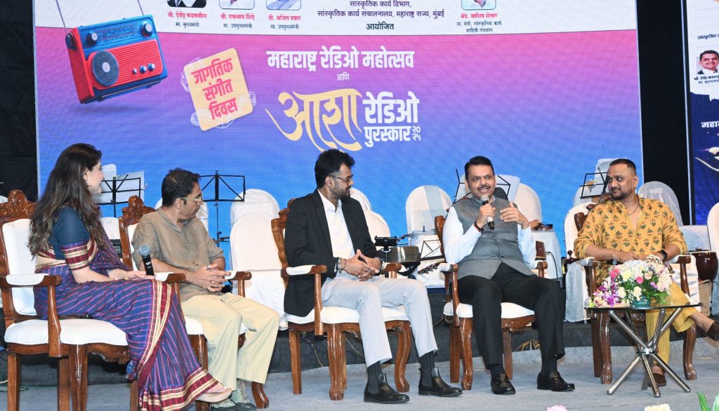जागतिक संगीत दिनाचे औचित्य साधून आयोजित महाराष्ट्र रेडिओ महोत्सव व आशा रेडिओ पुरस्कार सोहळ्यात रेडिओ जॉकी सिद्धू, अक्की, अर्चना, ब्रजेश, भूषण, सपना भट यांनी मुख्यमंत्र्यांची मुलाखत घेतली. या कार्यक्रमाचे समन्वयन हेनल मेहता यांनी केले. कार्यक्रमास सांस्कृतिक कार्य मंत्री ॲड. आशिष शेलार, ज्येष्ठ गायिका महाराष्ट्र भूषण आशा भोसले, सांस्कृतिक कार्य विभागाचे अपर मुख्य सचिव विकास खारगे, संचालक विभीषण चवरे उपस्थित होते.