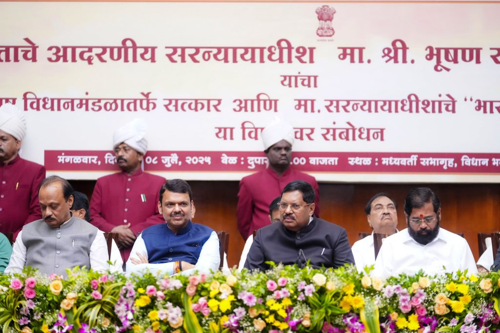 विधानमंडळाच्या वतीने आयोजित सत्काराला उत्तर देताना भारताची राज्यघटना या विषयावर सरन्यायाधीश श्री. गवई बोलत होते. यावेळी मुख्यमंत्री देवेंद्र फडणवीस, विधानपरिषदेचे सभापती प्रा. राम शिंदे, विधानसभेचे अध्यक्ष अड. राहुल नार्वेकर, उपमुख्यमंत्री एकनाथ शिंदे, उपमुख्यमंत्री अजित पवार, केंद्रीय सामाजिक न्याय राज्यमंत्री रामदास आठवले, उपसभापती डॉ. नीलम गोऱ्हे, उपाध्यक्ष अण्णासाहेब बनसोडे, विधानपरिषदेचे विरोधी पक्षनेते अंबादास दानवे यांच्यासह मंत्रीमंडळातील सर्व मंत्रीगण, दोन्ही सभागृहाचे सदस्य उपस्थित होते.