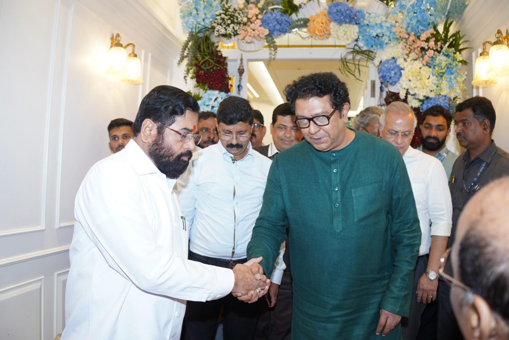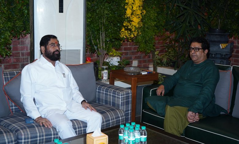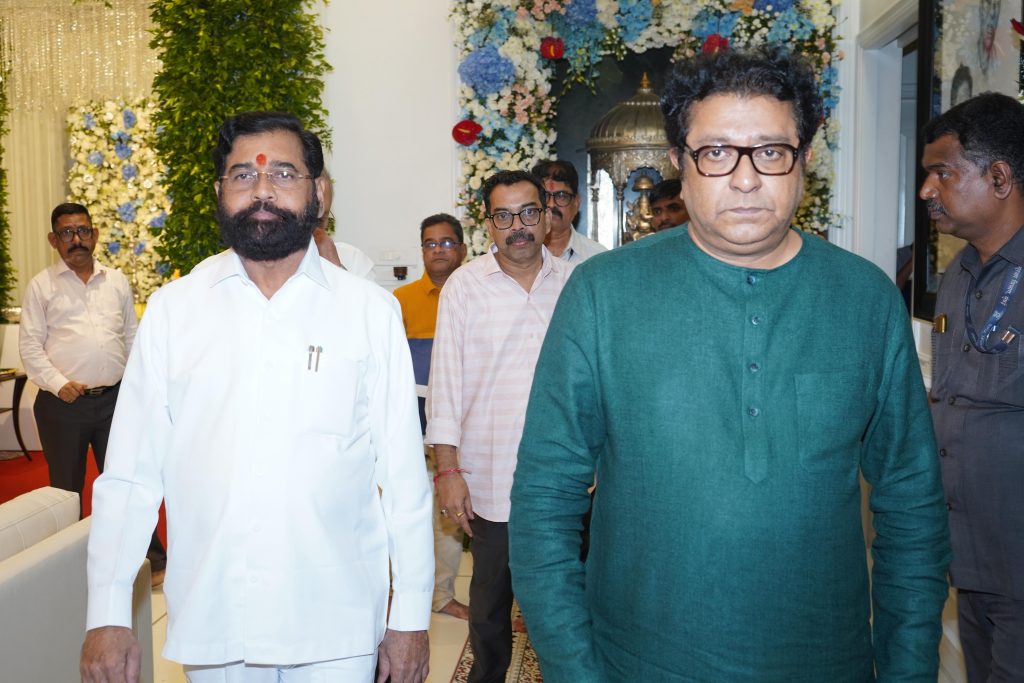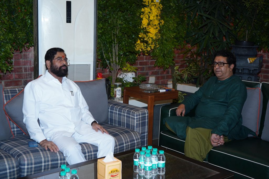मुंबई: – उपमुख्यमंत्री एकनाथ शिंदे यांनी आज मनसे अध्यक्ष राज ठाकरे यांच्या दादर येथील शिवतीर्थ निवासस्थानी जाऊन आज श्री गणेशाचे मनोभावे दर्शन घेतले. यावेळी त्यांनी राज यांची सदिच्छा भेट घेऊन विविध विषयांवर चर्चा केली.