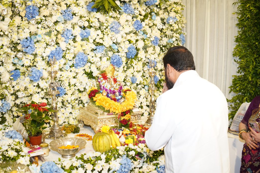 उपमुख्यमंत्री एकनाथ शिंदे यांनी घेतली राज ठाकरे यांच्या गणपती बाप्पाचे दर्शन