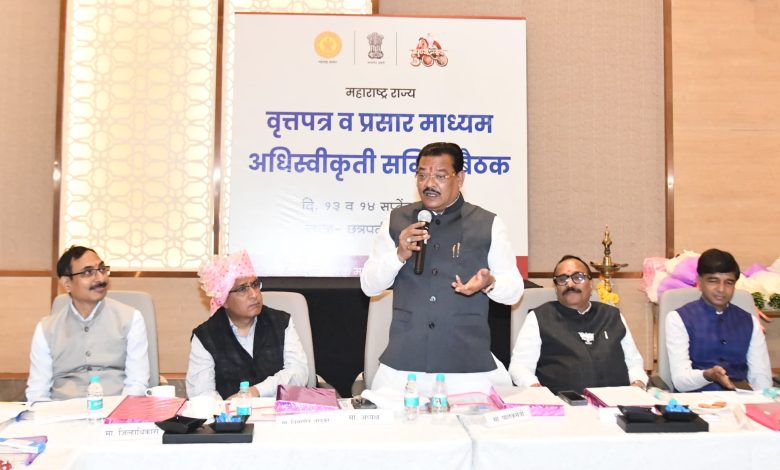 महाराष्ट्र राज्य वृत्तपत्र व प्रसारमाध्यम अधिस्वीकृती समितीच्या दोनदिवसीय बैठकीचे उद्घाटन शनिवारी छत्रपती संभाजीनगर येथे त्यांच्या हस्ते झाले. या कार्यक्रमाच्या अध्यक्षस्थानी इतर मागास बहुजन कल्याणमंत्री अतुल सावे होते. यावेळी आमदार प्रशांत बंब, विभागीय आयुक्त जितेंद्र पापळकर, जिल्हाधिकारी दिलीप स्वामी, समितीचे अध्यक्ष यदु जोशी, माहिती व जनसंपर्क संचालक किशोर गांगुर्डे, तसेच विभागीय अधिकारी उपस्थित होते.